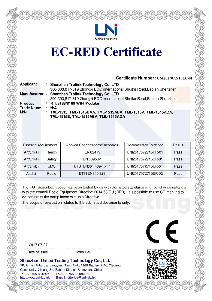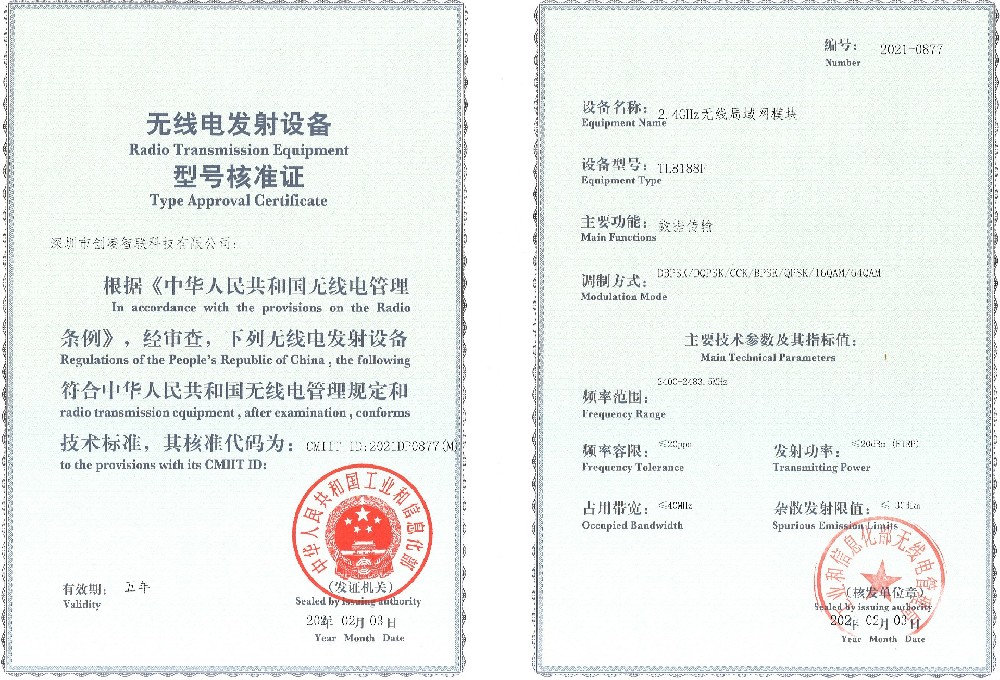 獲得多項(xiàng)知識產(chǎn)權(quán)及FCC、SRRC、CE、Telec、ROHS等多個(gè)國際技術(shù)認(rèn)證
