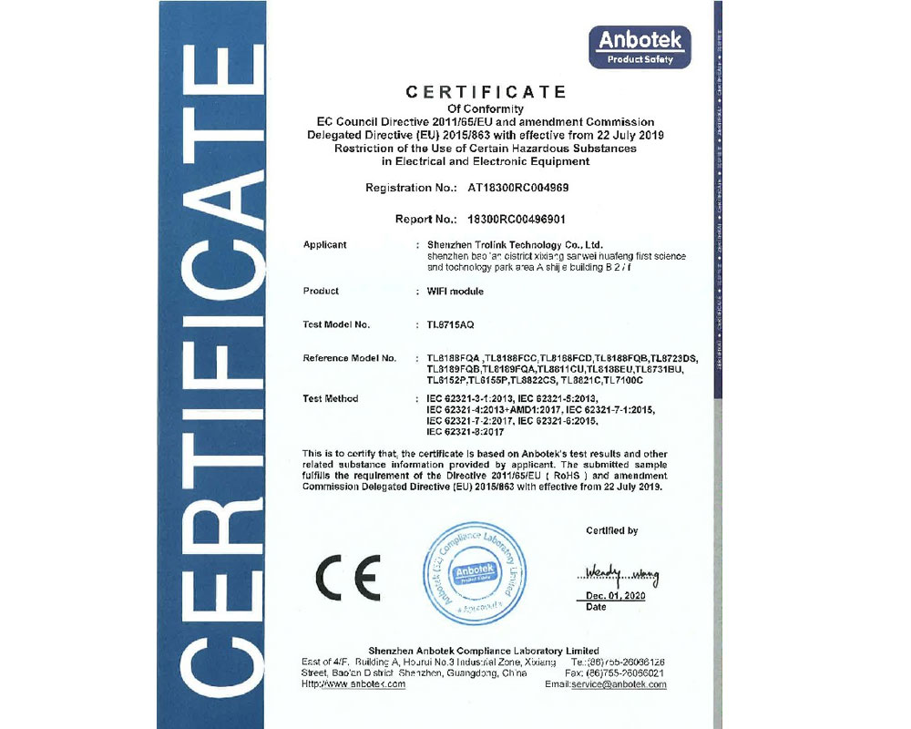 RoHS、SRRC(國內(nèi)無線電)、FCC (美國聯(lián)邦通信)、CE(歐洲安全)、Telec(日本無線電)